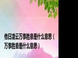 大家好,我是小科,我来为大家解答以上问题。他日凌云万事胜意是什么意思,万事胜意是什么意思很多人还不知道,现在让我们一起来看看吧!1 浏览全文>>