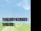 大家好,我是小科,我来为大家解答以上问题。为你唱这首歌许嵩完整版歌词,为你唱这首歌很多人还不知道,现在让我们一起来看看吧!1、一段 浏览全文>>