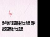 大家好,我是东南,我来为大家解答以上问题凭栏静听潇潇雨是什么意思,凭栏处潇潇雨歇什么意思很多人还不知道,现在让我们一起来看看吧!大 浏览全文>>