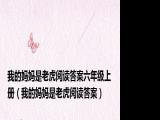 大家好,我是小科,我来为大家解答以上问题。我的妈妈是老虎阅读答案六年级上册,我的妈妈是老虎阅读答案很多人还不知道,现在让我们一起来 浏览全文>>