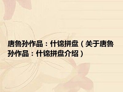 导读 大家好,小迪来为大家解答以上的问题。唐鲁孙作品:什锦拼盘,关于唐鲁孙作品:什锦拼盘介绍这个很多人还不知道,现在让我们一起来看看吧!1