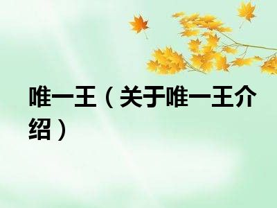 大家好,小迪来为大家解答以上的问题。唯一王,关于唯一王介绍这个很多人还不知道,现在让我们一起来看看吧!