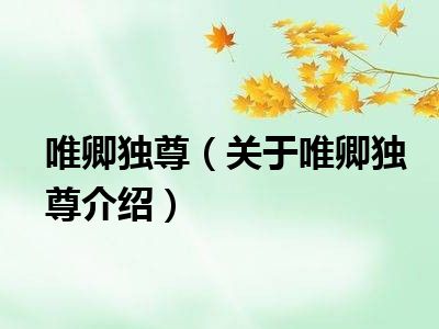 大家好,小迪来为大家解答以上的问题。唯卿独尊,关于唯卿独尊介绍这个很多人还不知道,现在让我们一起来看看吧!