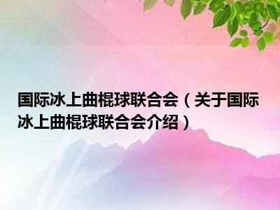 1、 国际冰上曲棍球联合会,又称国际班迪球联合会,1955年成立,是组织、管理、普及冰上曲棍球的国际组织。