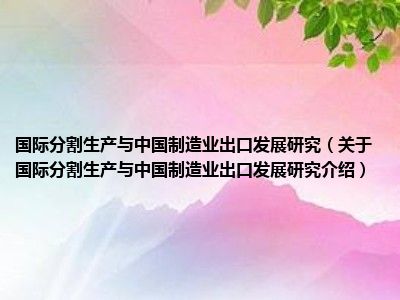 国际分割生产与中国制造业出口发展研究(关于国际分割生产与中国制造业出口发展研究介绍)