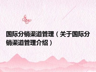 国际分销渠道管理(关于国际分销渠道管理介绍)