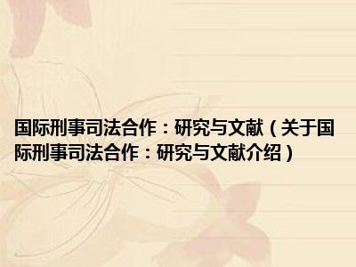 国际刑事司法合作:研究与文献(关于国际刑事司法合作:研究与文献介绍)