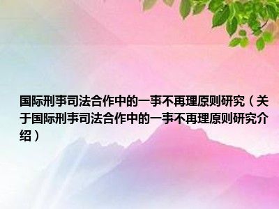 国际刑事司法合作中的一事不再理原则研究(关于国际刑事司法合作中的一事不再理原则研究介绍)