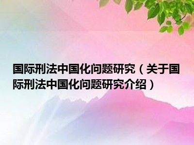 导读 大家好,小迪来为大家解答以上的问题。国际刑法中国化问题研究,关于国际刑法中国化问题研究介绍这个很多人还不知道,现在让我们一起来看看吧