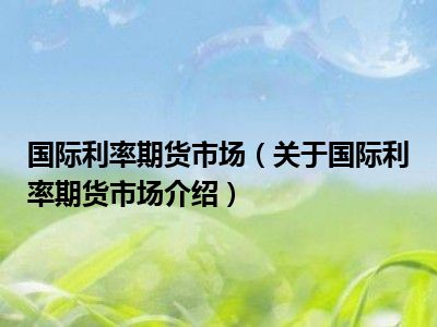 国际利率期货市场(关于国际利率期货市场介绍)