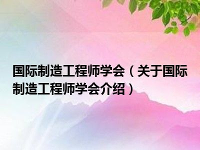 国际制造工程师学会(关于国际制造工程师学会介绍)