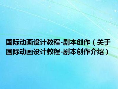 导读 大家好,小迪来为大家解答以上的问题。国际动画设计教程-剧本创作,关于国际动画设计教程-剧本创作介绍这个很多人还不知道,现在让我们一起来
