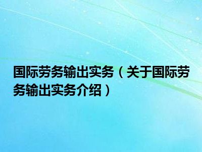 国际劳务输出实务(关于国际劳务输出实务介绍)