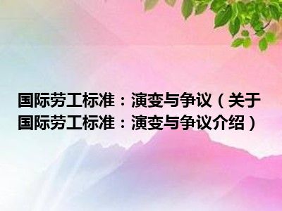 导读 大家好,小迪来为大家解答以上的问题。国际劳工标准:演变与争议,关于国际劳工标准:演变与争议介绍这个很多人还不知道,现在让我们一起来看