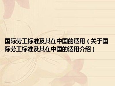 导读 大家好,小迪来为大家解答以上的问题。国际劳工标准及其在中国的适用,关于国际劳工标准及其在中国的适用介绍这个很多人还不知道,现在让我们