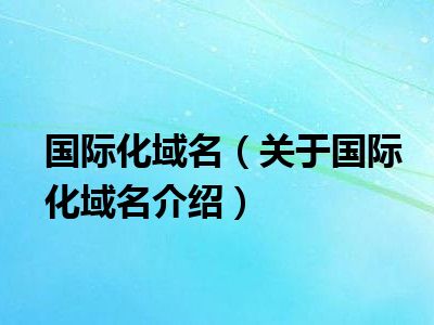 导读 大家好,小迪来为大家解答以上的问题。国际化域名,关于国际化域名介绍这个很多人还不知道,现在让我们一起来看看吧!1、 国际化域名 英