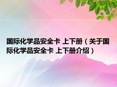 大家好,小迪来为大家解答以上的问题。国际化学品安全卡 上下册,关于国际化学品安全卡 上下册介绍这个很多人还不知道,现在让我们一起来看看吧!