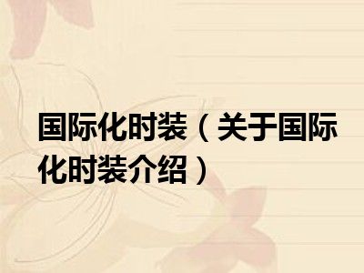 大家好,小迪来为大家解答以上的问题。国际化时装,关于国际化时装介绍这个很多人还不知道,现在让我们一起来看看吧!