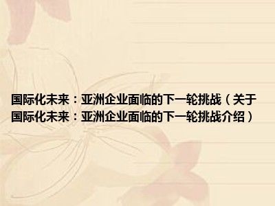 国际化未来:亚洲企业面临的下一轮挑战(关于国际化未来:亚洲企业面临的下一轮挑战介绍)