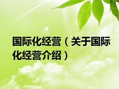国际化经营(关于国际化经营介绍)