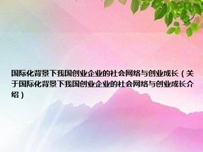 国际化背景下我国创业企业的社会网络与创业成长(关于国际化背景下我国创业企业的社会网络与创业成长介绍)