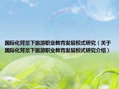 国际化背景下旅游职业教育发展模式研究(关于国际化背景下旅游职业教育发展模式研究介绍)