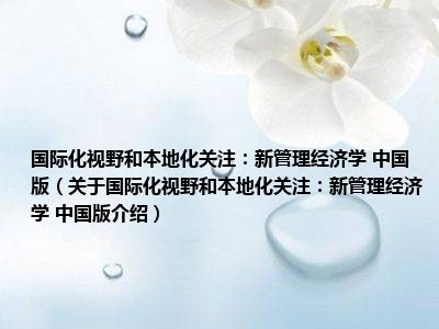 导读 大家好,小迪来为大家解答以上的问题。国际化视野和本地化关注:新管理经济学 中国版,关于国际化视野和本地化关注:新管理经济学 中国版