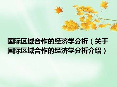 国际区域合作的经济学分析(关于国际区域合作的经济学分析介绍)