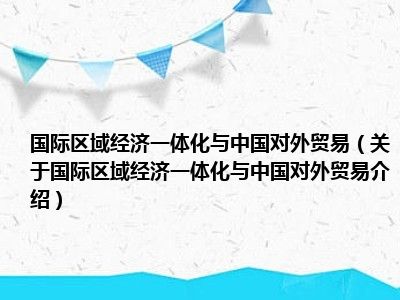 国际区域经济一体化与中国对外贸易(关于国际区域经济一体化与中国对外贸易介绍)