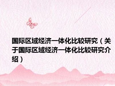 国际区域经济一体化比较研究(关于国际区域经济一体化比较研究介绍)