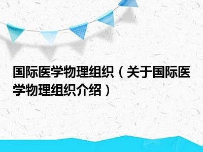 大家好,小迪来为大家解答以上的问题。国际医学物理组织,关于国际医学物理组织介绍这个很多人还不知道,现在让我们一起来看看吧!