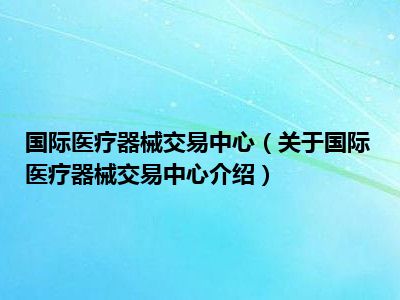 国际医疗器械交易中心(关于国际医疗器械交易中心介绍)