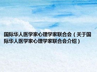 国际华人医学家心理学家联合会(关于国际华人医学家心理学家联合会介绍)