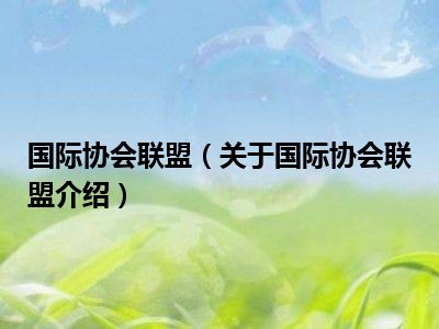大家好,小迪来为大家解答以上的问题。国际协会联盟,关于国际协会联盟介绍这个很多人还不知道,现在让我们一起来看看吧!