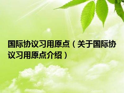 导读 大家好,小迪来为大家解答以上的问题。国际协议习用原点,关于国际协议习用原点介绍这个很多人还不知道,现在让我们一起来看看吧!1、 国