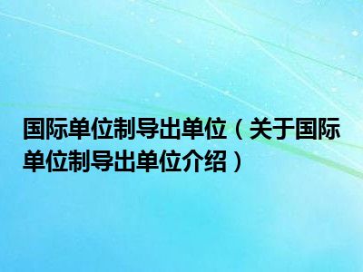 国际单位制导出单位(关于国际单位制导出单位介绍)
