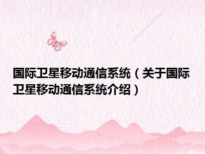 国际卫星移动通信系统(关于国际卫星移动通信系统介绍)