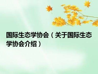 导读 大家好,小迪来为大家解答以上的问题。国际生态学协会,关于国际生态学协会介绍这个很多人还不知道,现在让我们一起来看看吧!1、 国际生