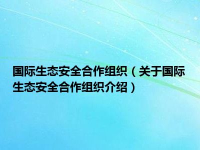 国际生态安全合作组织(关于国际生态安全合作组织介绍)