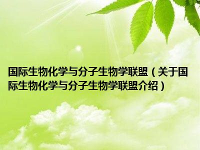 导读 大家好,小迪来为大家解答以上的问题。国际生物化学与分子生物学联盟,关于国际生物化学与分子生物学联盟介绍这个很多人还不知道,现在让我们