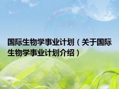 国际生物学事业计划(关于国际生物学事业计划介绍)