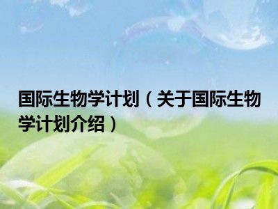 国际生物学计划(关于国际生物学计划介绍)