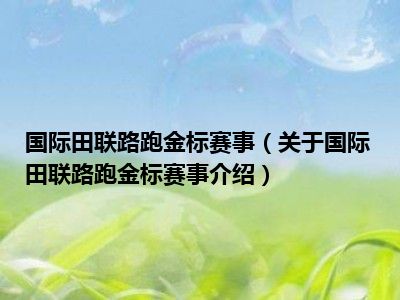 国际田联路跑金标赛事(关于国际田联路跑金标赛事介绍)