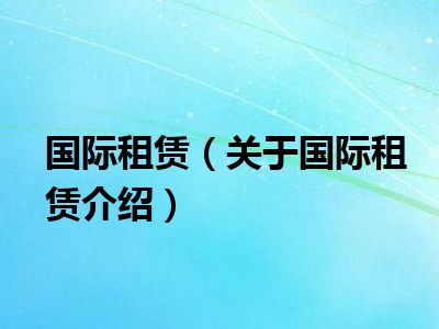 大家好,小迪来为大家解答以上的问题。国际租赁,关于国际租赁介绍这个很多人还不知道,现在让我们一起来看看吧!