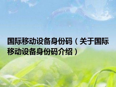 国际移动设备身份码(关于国际移动设备身份码介绍)