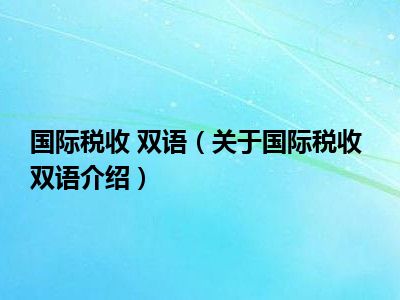 导读 大家好,小迪来为大家解答以上的问题。国际税收 双语,关于国际税收 双语介绍这个很多人还不知道,现在让我们一起来看看吧!1、 《国际