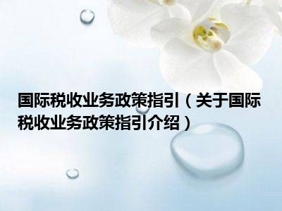国际税收业务政策指引(关于国际税收业务政策指引介绍)