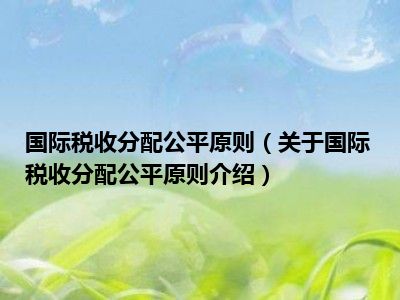 国际税收分配公平原则(关于国际税收分配公平原则介绍)