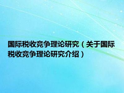 国际税收竞争理论研究(关于国际税收竞争理论研究介绍)