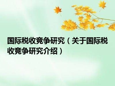 国际税收竞争研究(关于国际税收竞争研究介绍)